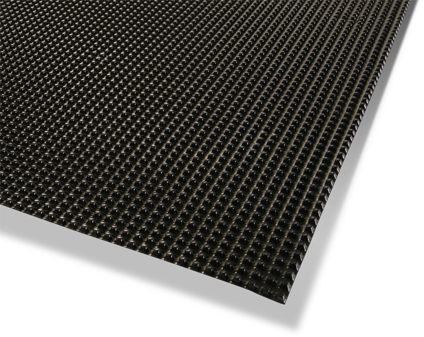 Leakdrain comprises a single cuspated core with very high compressive strength performance. This high compressive strength, combined with high in-plane flow capacity allows the flow of leachate and other particle laden liquids without the risk of clogging, even under very high loads.