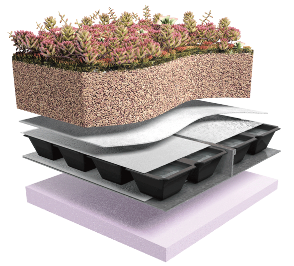 The drainage design of intensive green roofs requires only a simple soil layer; by contrast the modern method of an extensive green roof requires a combination of efficient drainage and water attenuation in order to allow the ecology to flourish.