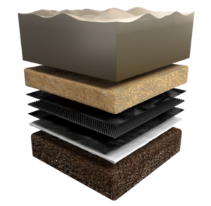 Protector Pozidrain recoge y drena el lixiviado y al mismo tiempo protege el revestimiento de geomembrana por punción. Los grandes espacios vacíos presentes en el núcleo de drenaje también ofrecen una excelente resistencia a la obstrucción biológica.